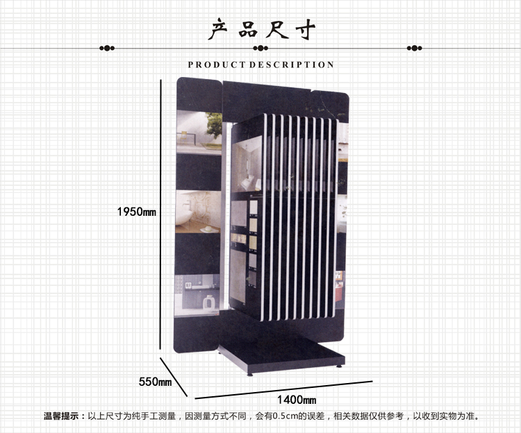 | 使用場景 | 可展示石材,瓷磚,木地板等建材樣品,可用于門店,展廳,展會等地方 |