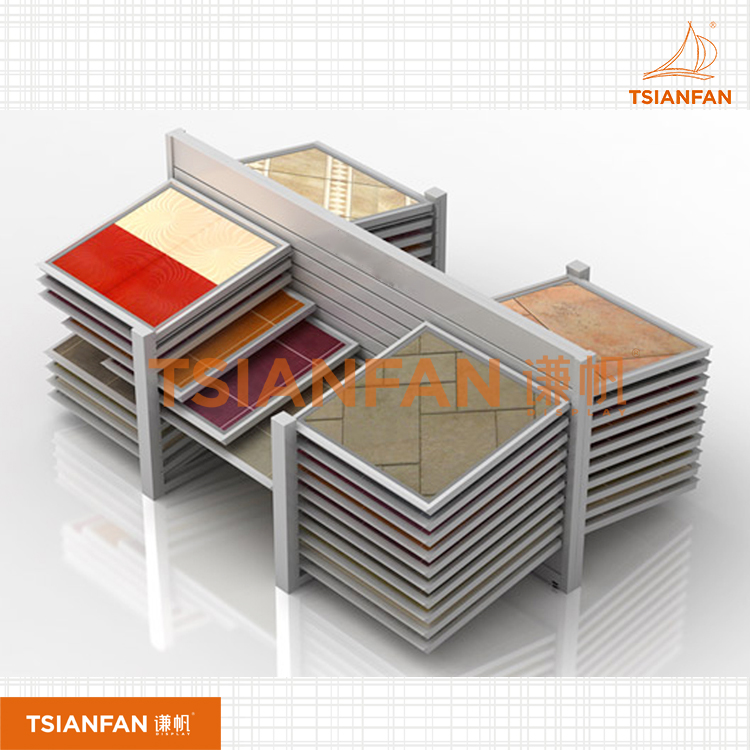 瓷磚雙排斜躺展示架-放瓷磚展廳展架-精致美觀