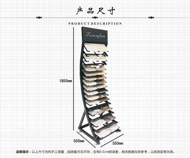 | 使用場景 | 可展示石材,瓷磚,木地板等建材樣品,可用于門店,展廳,展會等地方 |