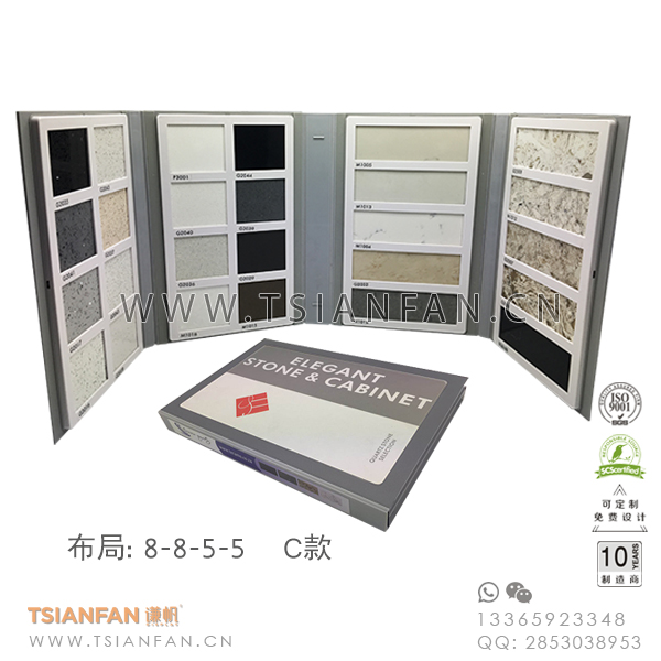謙帆(廈門)工貿(mào)有限公司專業(yè)生產(chǎn)石英石塑料樣品冊色卡,人造石色卡樣本,應(yīng)用于門店,展廳,展會等地方。能夠滿足廣大客戶不同的需求