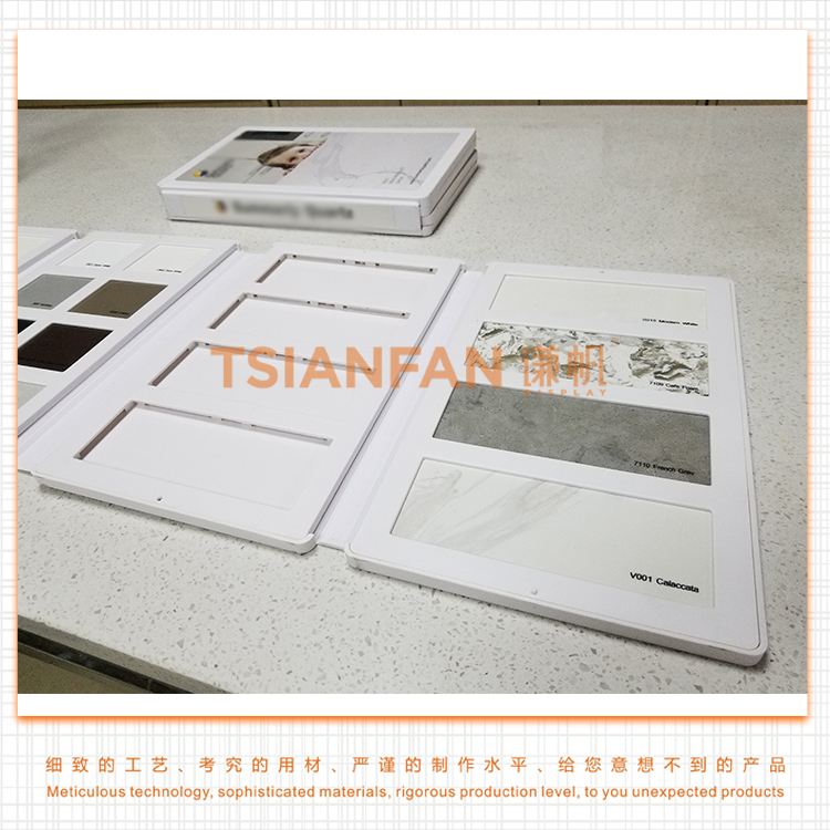 謙帆專業(yè)從事新款石材塑料樣品冊,石英石樣品夾,石英石樣品盒,設(shè)計(jì)和生產(chǎn),提供一站式服務(wù)., 提升品牌形象廈門展示柜品類齊全,高端品質(zhì),價(jià)格優(yōu)惠!