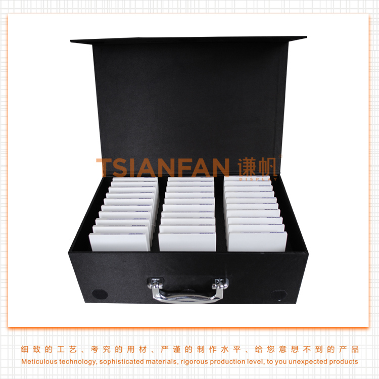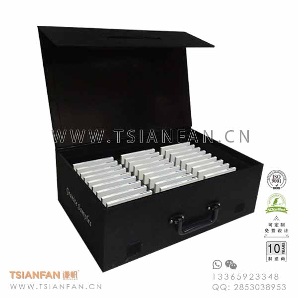 謙帆人造石翻蓋樣板盒,人造石翻蓋包裝盒,黑色石英石樣板盒,我們根據(jù)您的特殊要求設(shè)計(jì)展架.完美設(shè)計(jì),時(shí)尚高端,品質(zhì)保證謙帆工貿(mào)為您規(guī)劃,設(shè)計(jì),制造及安裝熱線:13365904989.