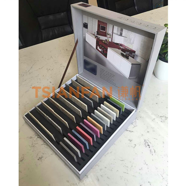 石材翻蓋樣品箱,花崗巖翻蓋樣品盒首選謙帆展具,經(jīng)驗(yàn)豐富,工藝精湛,品質(zhì)保證。展示架廠家直銷。