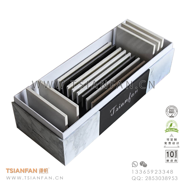 謙帆可以根據(jù)產(chǎn)品特點,設計與之匹配的產(chǎn)品促銷石英石天地蓋樣板箱,石材翻蓋展示盒,再加上具有創(chuàng)意的LOGO標牌,使產(chǎn)品醒目的展現(xiàn)在公眾面前,從而加大對產(chǎn)品的宣傳廣告作用